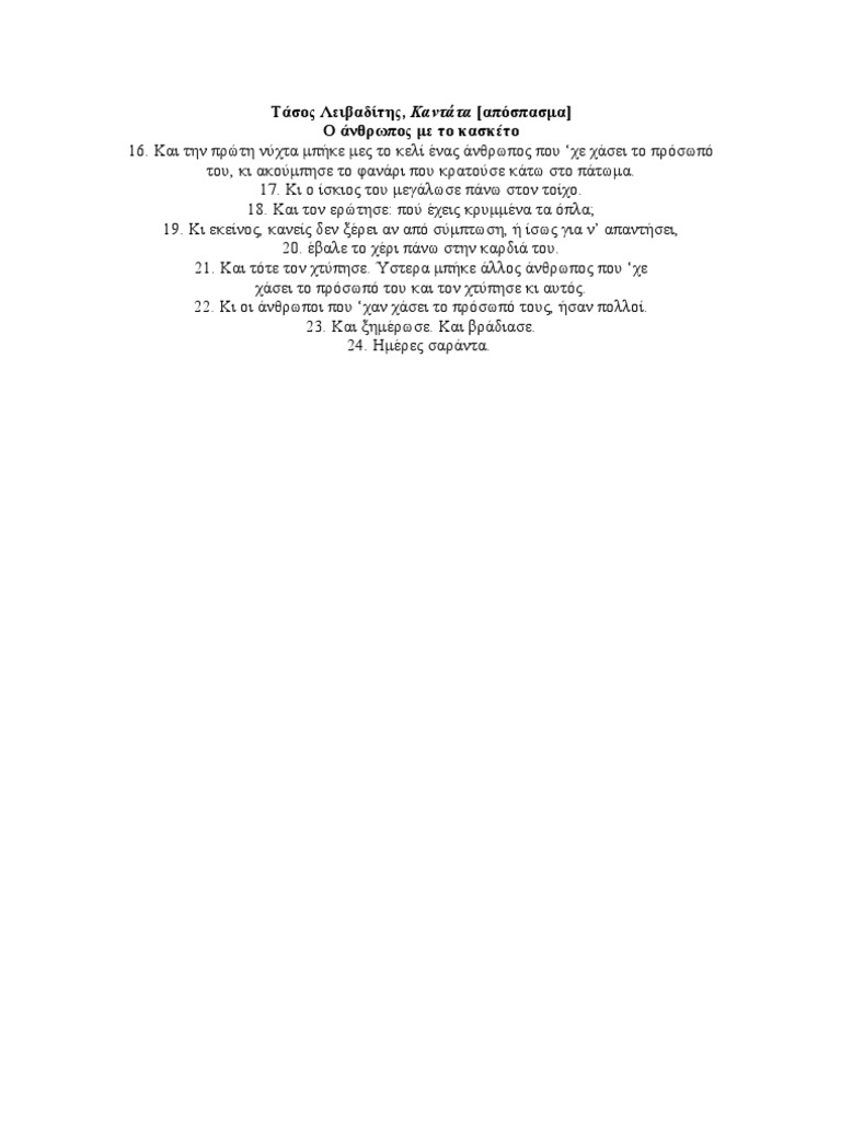 San Shmera Efyge O Megalos Poihths Tasos Leibadiths Mpetskas from mpetskas.com Μέγας ποιητής ο τάσος λειβαδίτης, για χίλιους δύο λόγους, αλλά προ πάντων γιατί μου αρέσει πολύ ο τάσος λειβαδίτης. Ο ποιητής που μας θυμίζει ότι πάντα «φυσάει στα σταυροδρόμια του κόσμου». Ο τάσος λειβαδίτης ήταν γιος του λύσανδρου λειβαδίτη και της βασιλικής κοντοπούλου. Ο γιος του λύσανδρου και της βασιλικής. Posted on τρίτη, 03 ιαν 2017 by isolde. Εγώ δεν βρίσκω κάτι κακό σε αυτό. Να κοιτάξεις τον εαυτούλη σου. Να μπορούσα, λέει, να ξαναγυρίσω στο παρελθόν να τακτοποιήσω μερικά πράγματα, ν' αποτελειώσω κάποια άλλα.